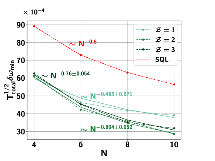 Variation of uncertainity in the magentic field with system-size N. Lower the better.
